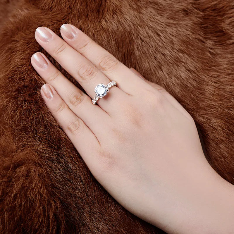This stunning 18k White Gold plated engagement ring is a piece of classic and elegant beauty. Made from high-quality 925 Silver, it features a timeless design that perfectly matches the promise of eternal love;