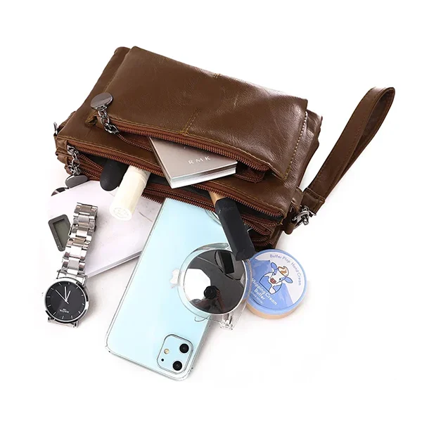 This genuine leather bag is great for carrying your cell phone, credit cards, cash, coin, and daily essentials.