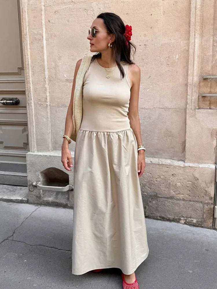 Get ready to stand out with this stunning long dress, which combines the elegance of pleats with the relaxed look of patchwork. Perfect for expressing your unique style, this model is a feminine and bohemian fashion statement.