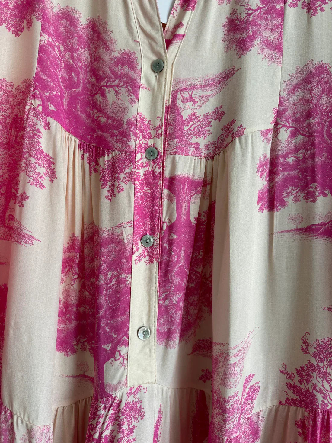 Made from a soft, lightweight fabric, the dress feels delicate and comfortable. The soft pink color, with a brassy touch, creates a modern and timeless look.