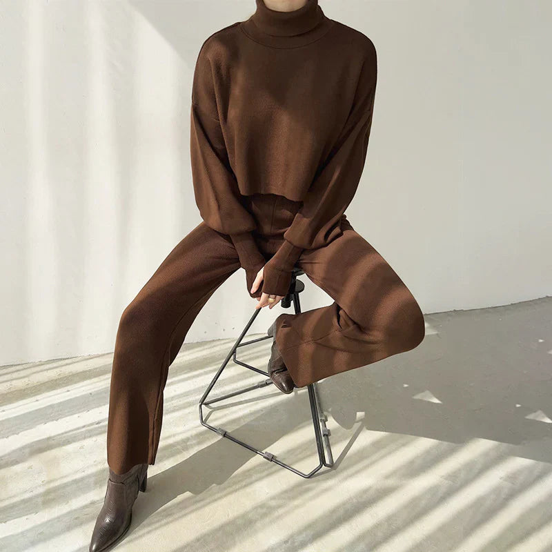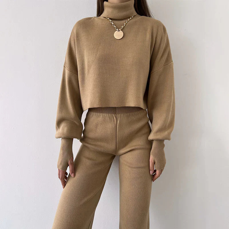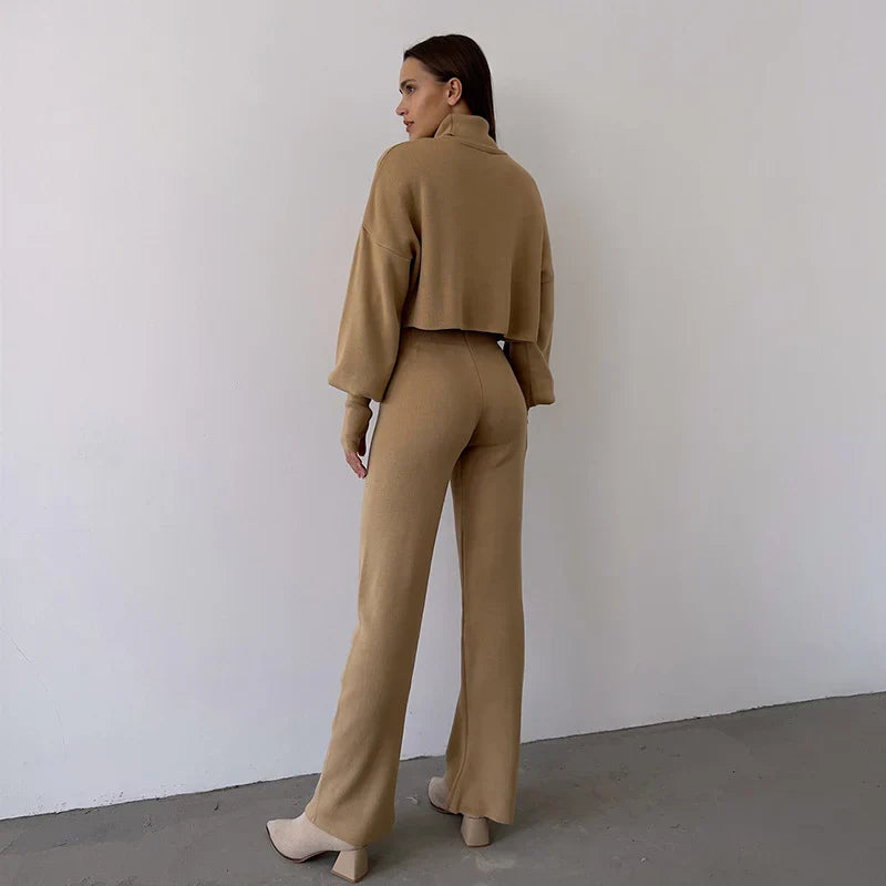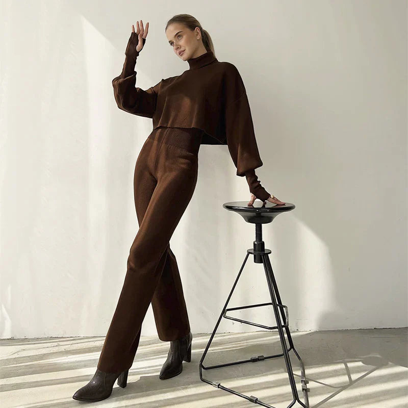 Look effortlessly chic with the Turtleneck Crop and Pants Set! Crafted from incredibly soft knit fabric, this set features a high-neck crop top, elasticated waistband pants, and an alluring silhouette. Elevate your outfit for any special occasion with this stylish set!