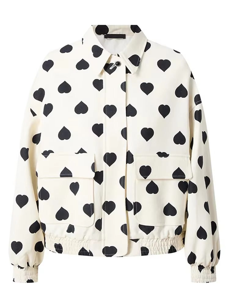 Add a touch of style to your closet with the Women's Jacket With Polka Dots. This women's jacket features a classic polka dot print that brings a fun and contemporary feel to your look, making it perfect for a variety of occasions.