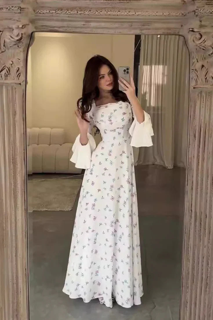 The long-sleeved dress with unique print and elegant design ensures a modern and charming look. The high-quality fabric and impeccable fit provide comfort and style.